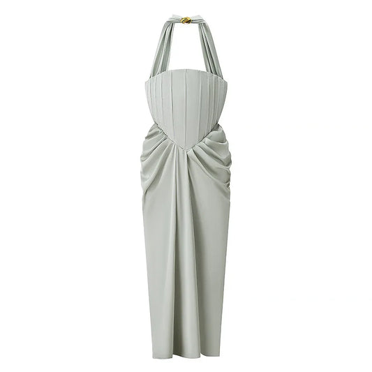 Backless Strap High-Waist Maxi Dress – Pure Colour Evening Elegance