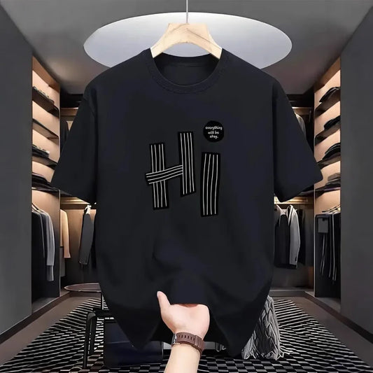 Loose Mesh Short Sleeve T-Shirt Men's Summer Casual Round Neck Digital Print Letter Pattern Sporty Comfortable Breathable Tee